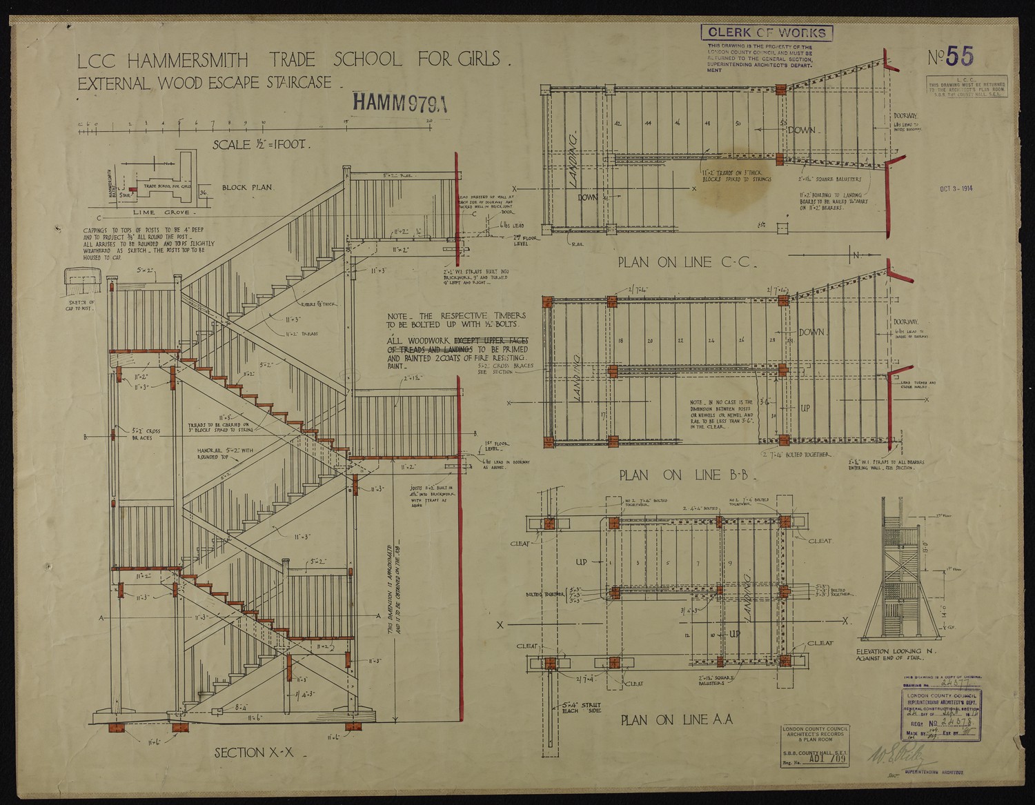 L.C.C. Hammersmith Trade School for Girls External Wood Escape Staircase -