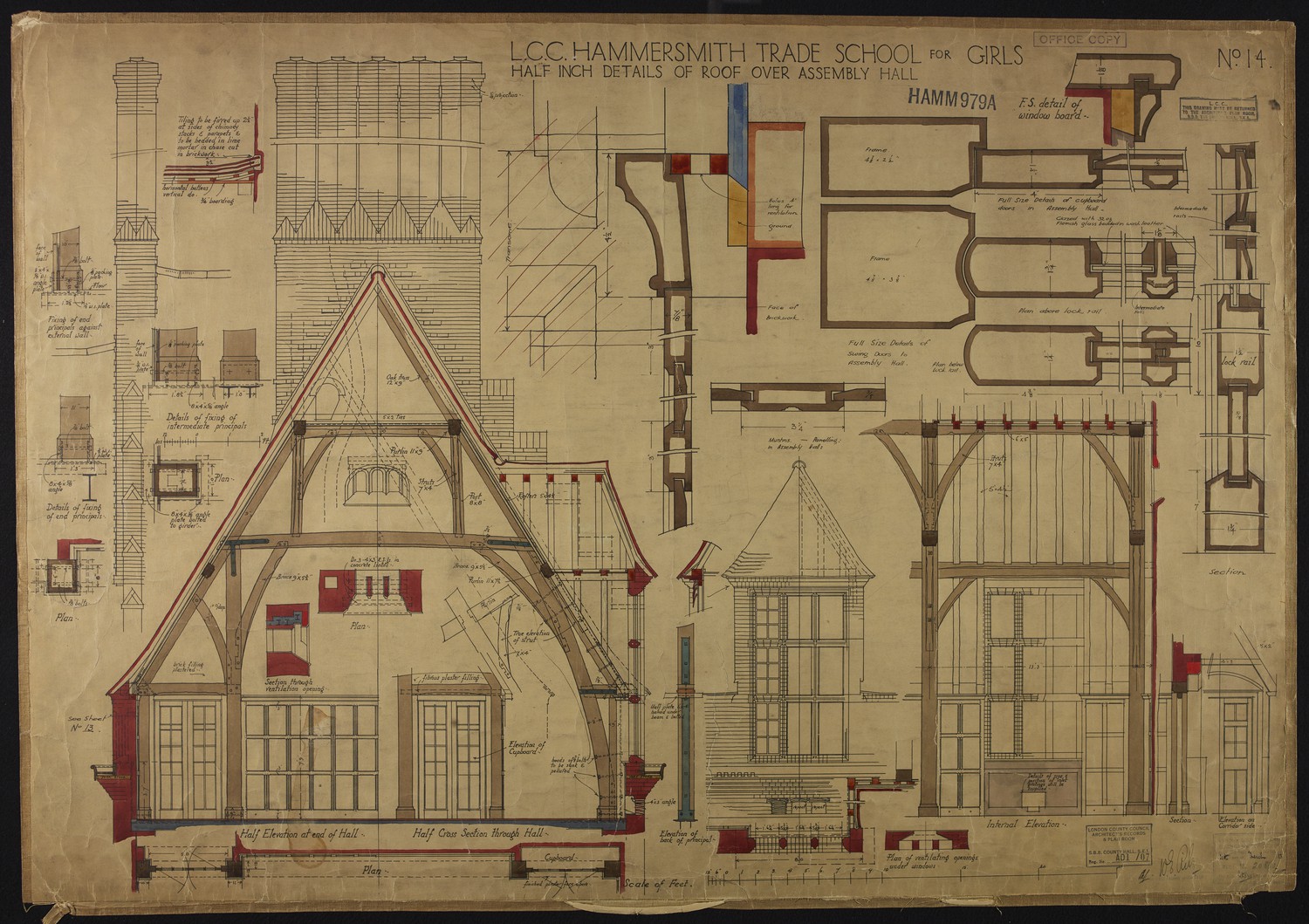 L.C.C. Hammersmith Trade School for Girls: Half Inch Details of Roof Over Assembly Hall -