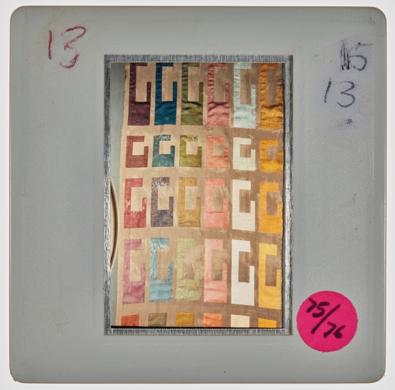 Annotation on slide mount 'B.A. Textiles 1995 Chelsea College of Art & Design'.