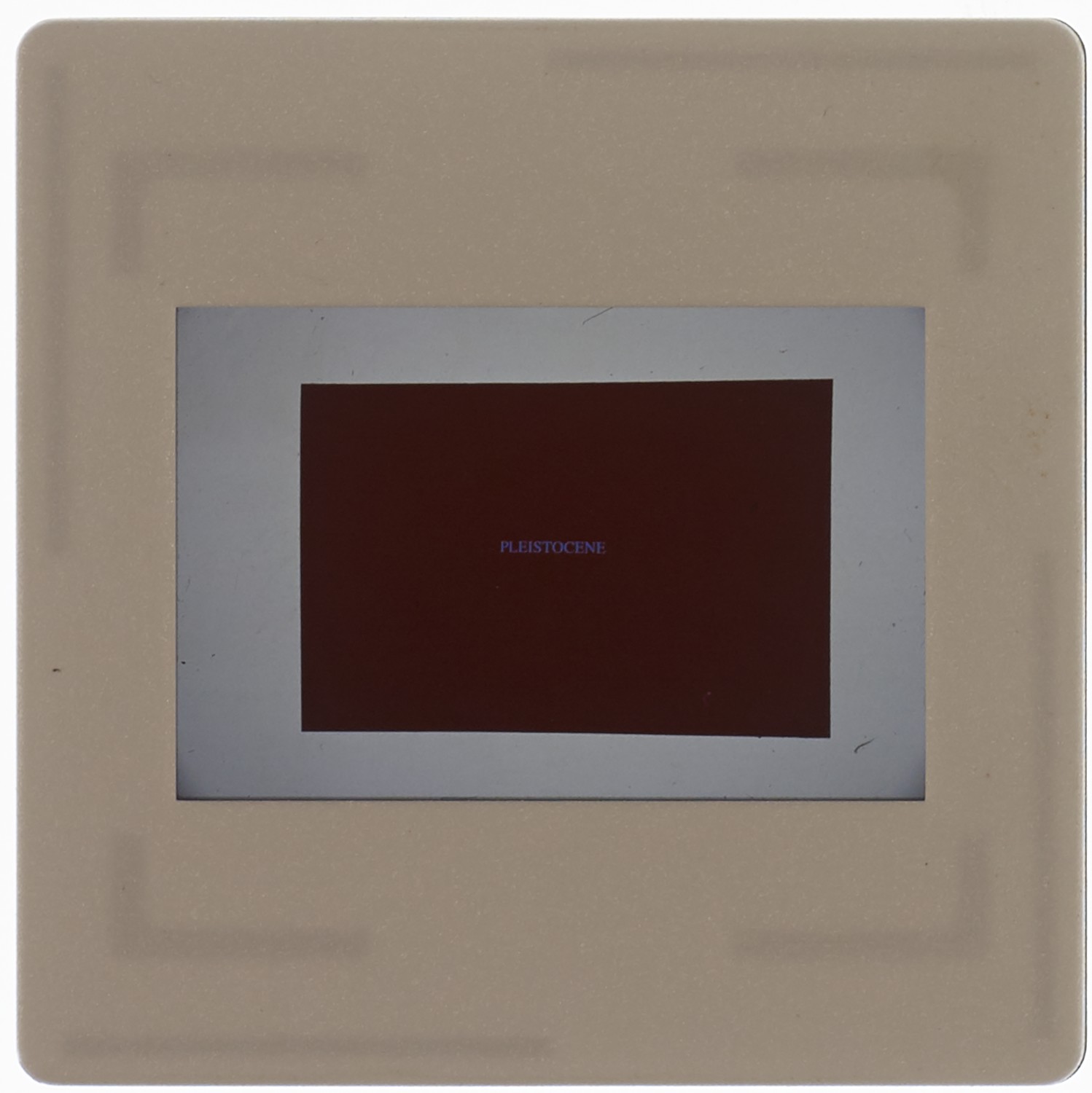 35mm colour slide of black rectangle on dark yellow background with the word 'MIOCENE' written in yellow.