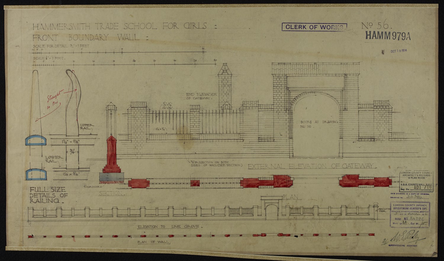 Hammersmith Trade School for Girls: Front Boundary Wall -