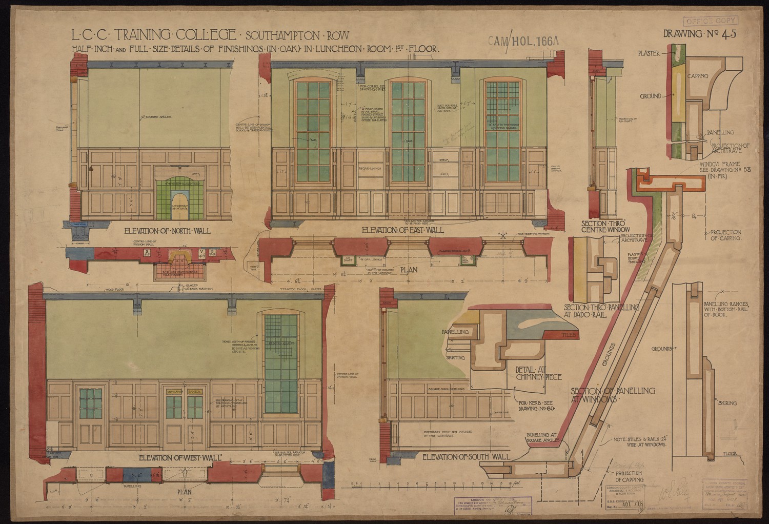 LCC Training College Southampton Row - Half Inch and Full Size Details of Finishings (In Oak) In Luncheon Room 1st Floor -