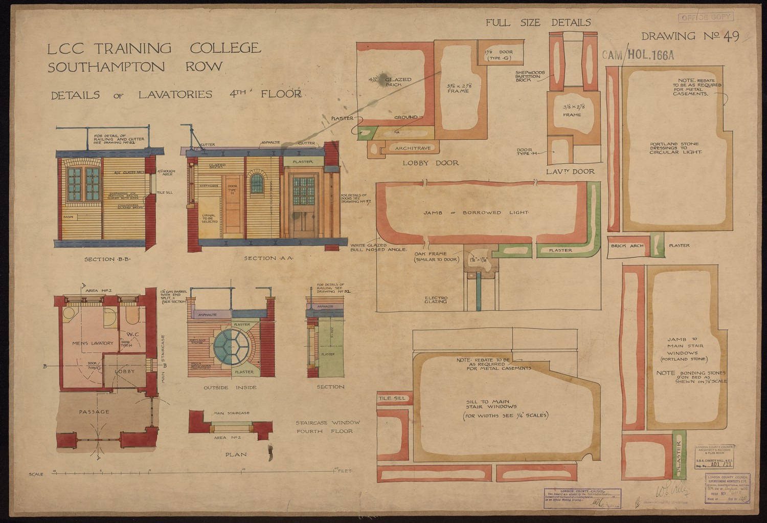 LCC Training College Southampton Row - Details of Lavatories of 4th Floor -