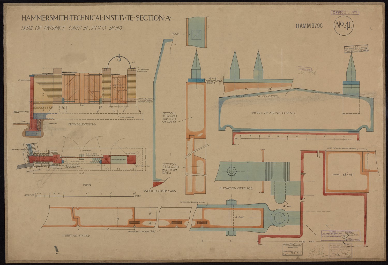 Hammersmith Technical Institute Section A - Details of Entrance Gates in Scott's Road -