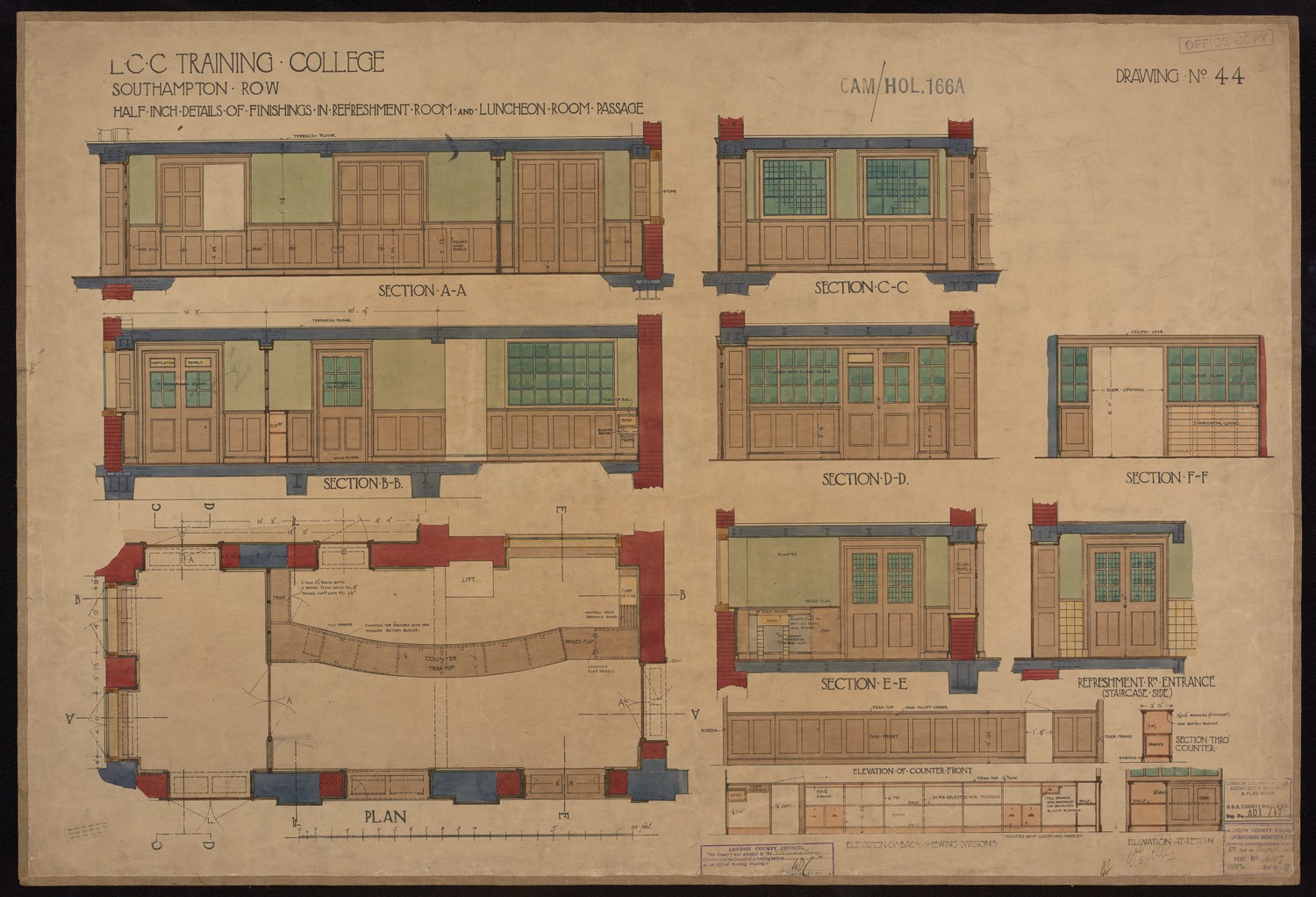 LCC Training College Southampton Row - Half Inch Details of Finishings In Refreshment Room and Luncheon Room Passage -