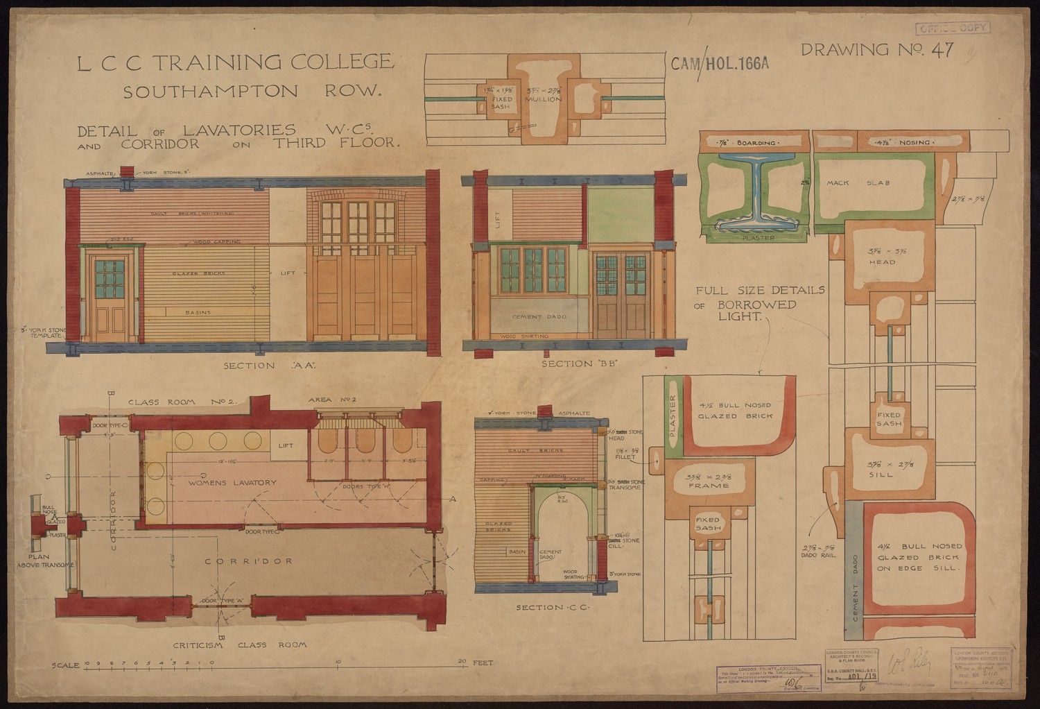 LCC Training College Southampton Row - Detail of Lavatories W.Cs and Corridor on Third Floor