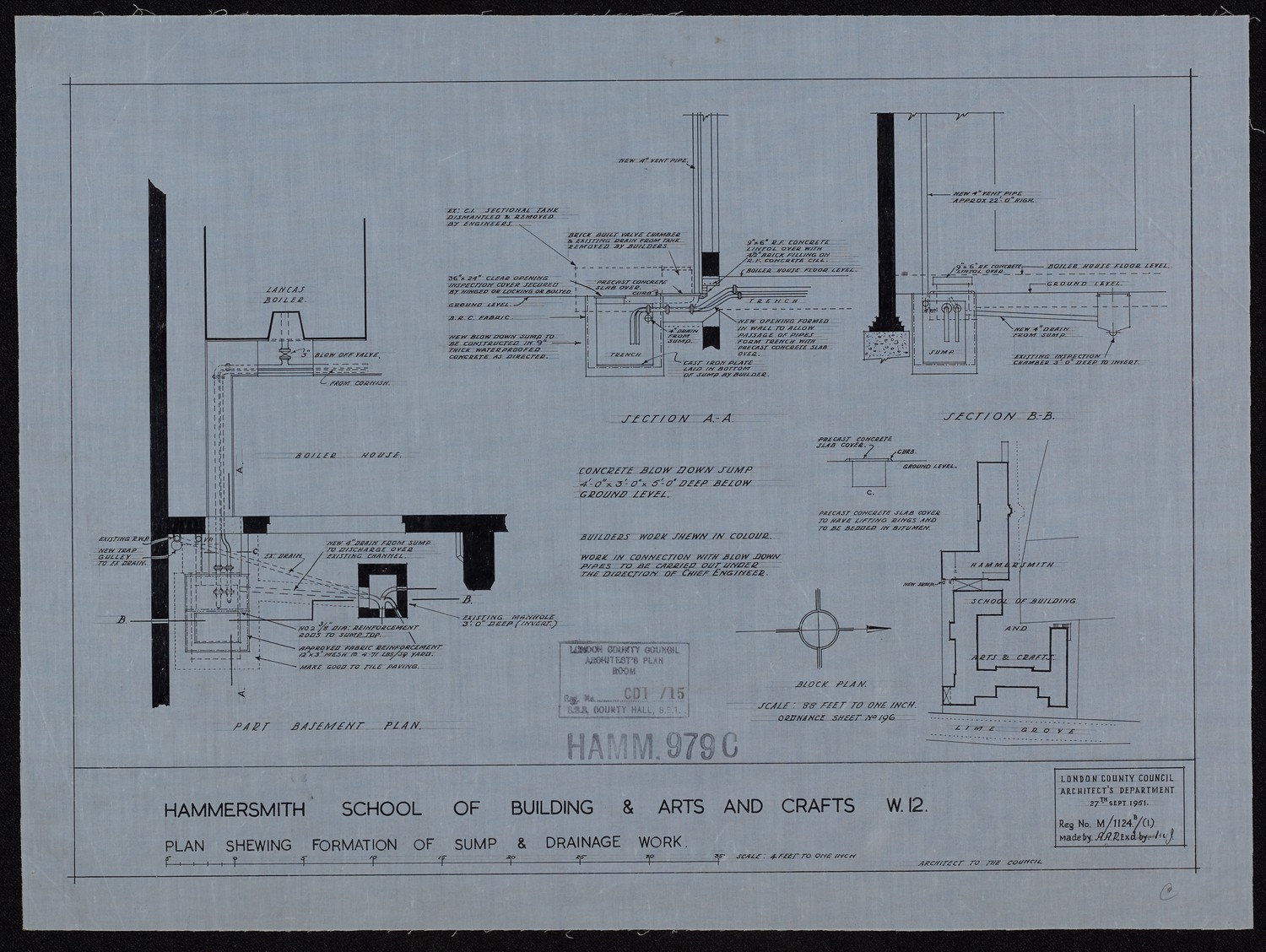 Hammersmith School of Building & Arts and Crafts W12 - Plan Shewing Formation of Sump & Drainage Work -
