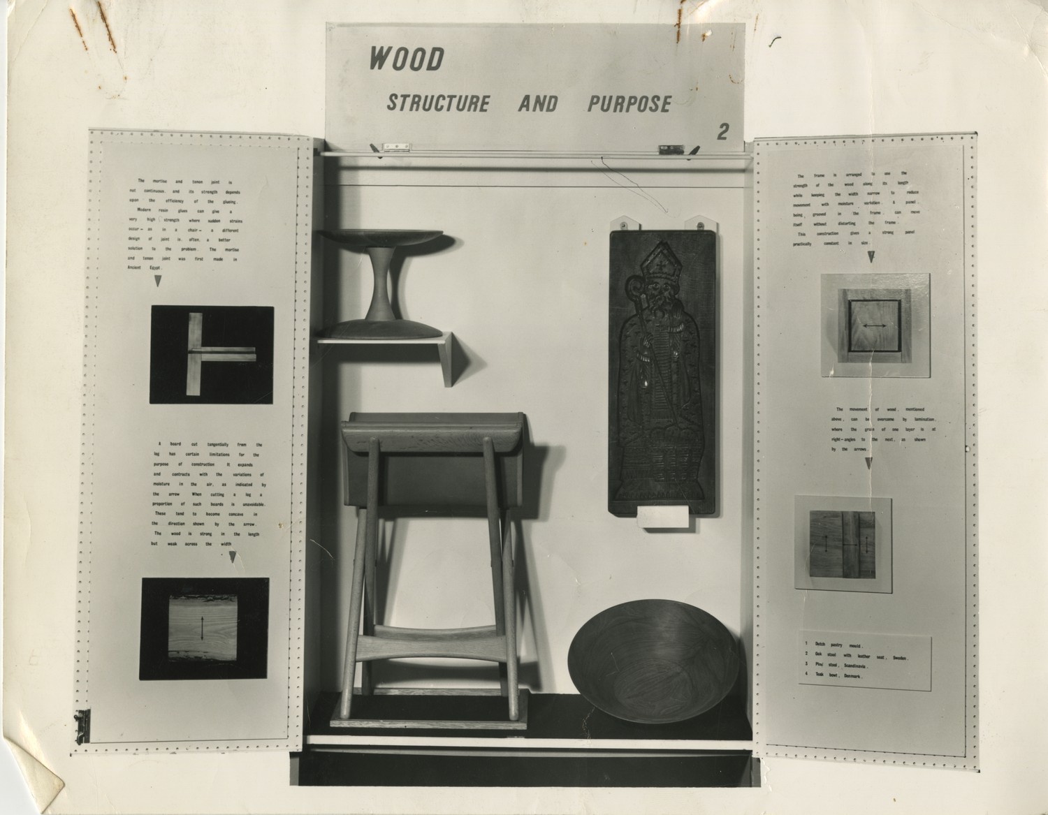 Black and white photographic print showing a single display case from the Circulating Design Scheme.