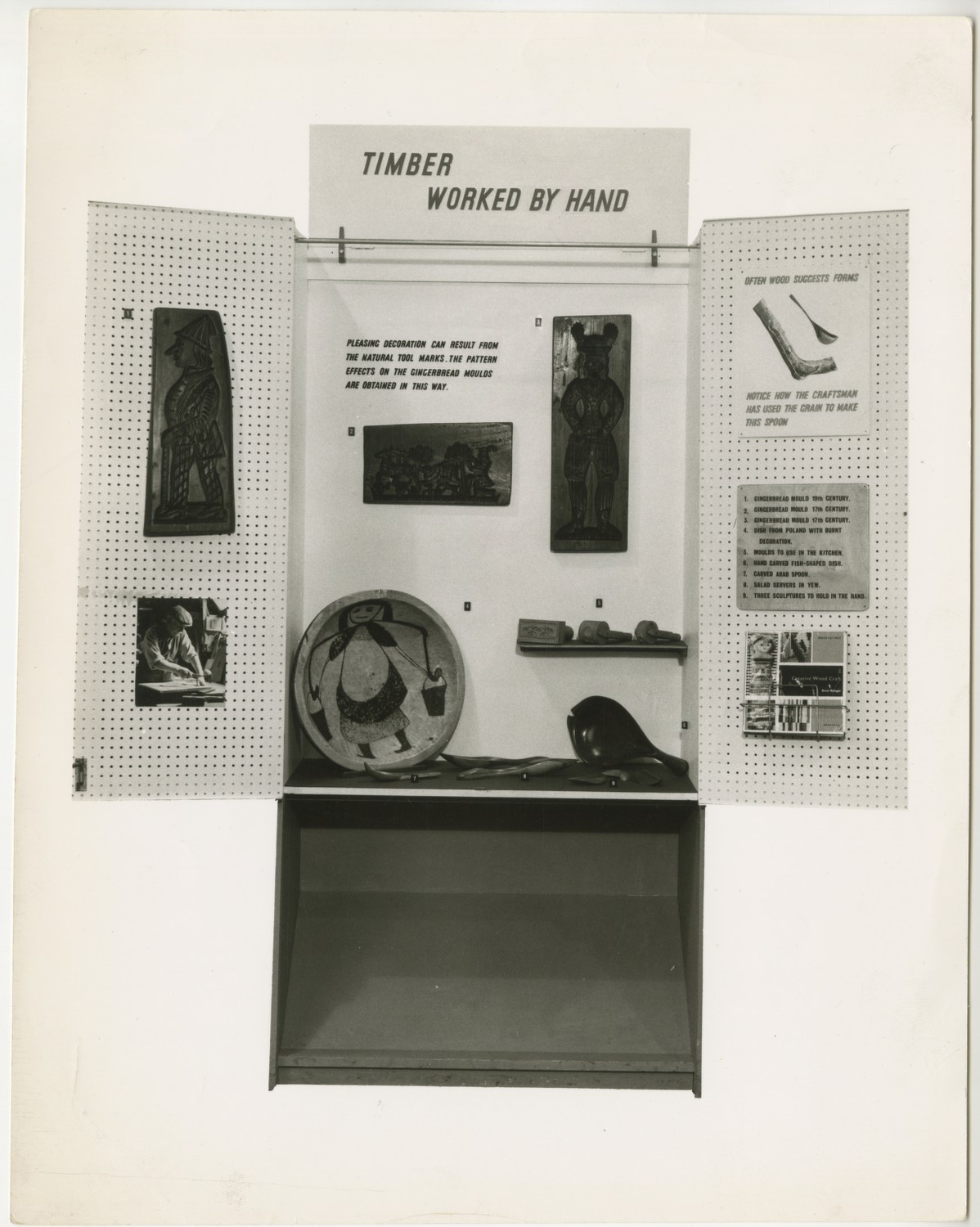 Black and white photographic print showing a single display case from the Circulating Design Scheme.