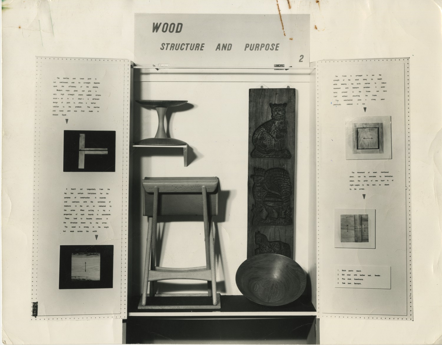 Black and white photographic print showing a single display case from the Circulating Design Scheme.